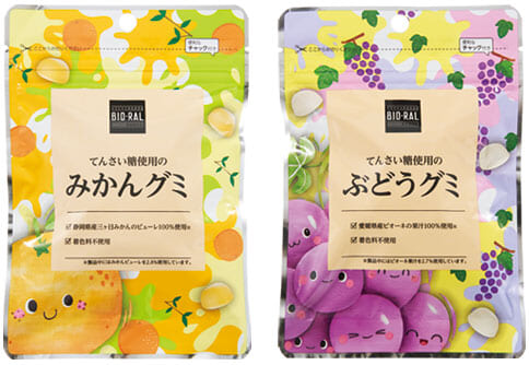 BIO-RAL てんさい糖使用のみかんグミ/ぶどうグミ