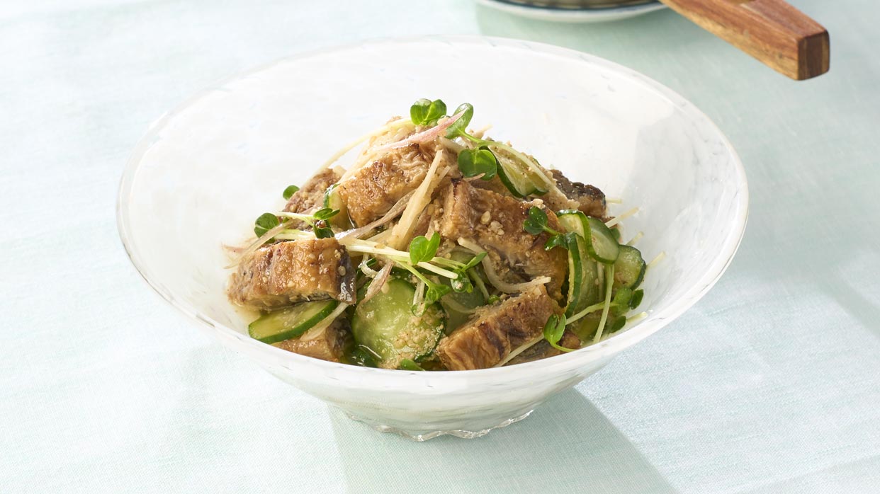 香り高い薬味と和えた、ちょっぴり贅沢なうなぎがメインのサラダ。