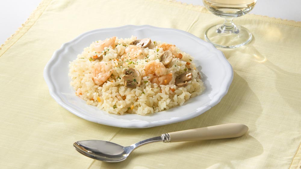 やさしい味わいで食べ飽きない! バターがふわっと香る、ぷりぷりエビのピラフ。