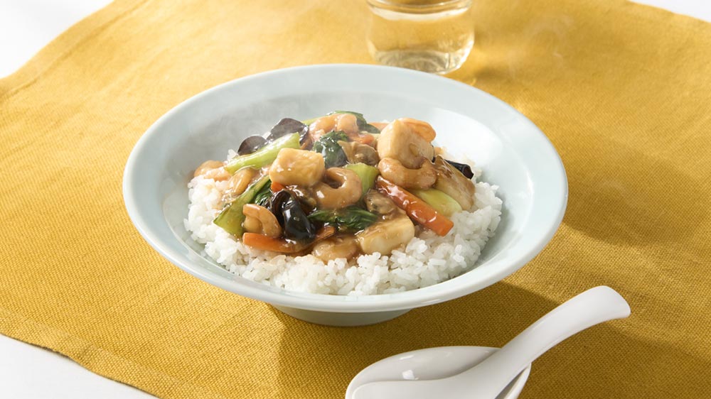 シーフードの旨みがギュッと詰まった、いろんな食感が楽しい鮮やかな中華飯。