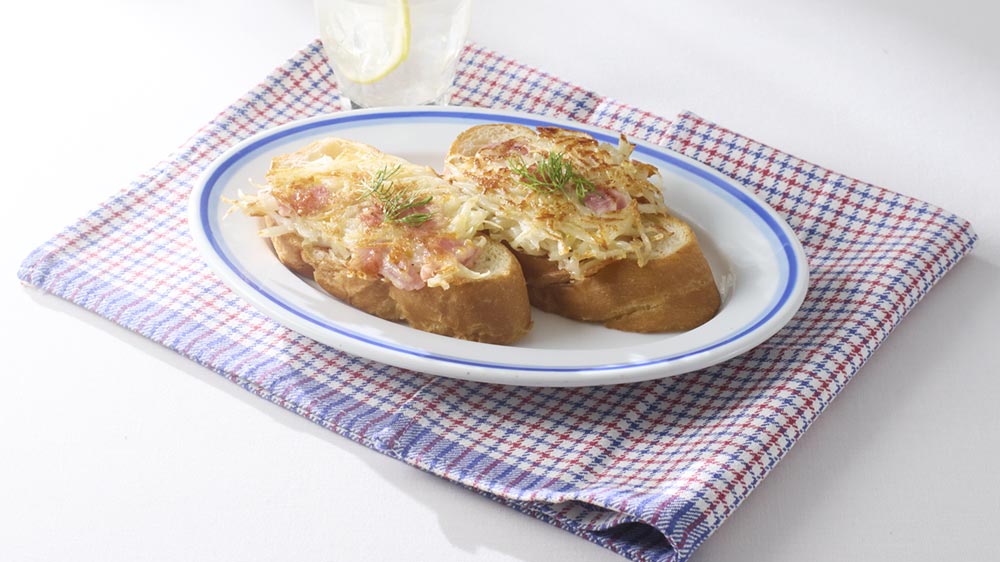 じゃがいもの千切りを使う場合は、マッチ棒くらいの太さに切り、洗わずに小麦粉をまぶします。パンは、塩バターフランスパンやフォカッチャなど、油分が含まれているパンが向いています。