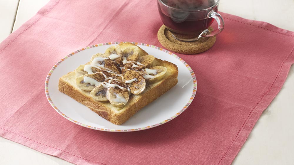 食パンにバターを塗り、バナナを並べてトースターで約5分焼く。