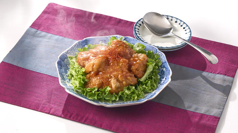 揚げずにソテーした鶏肉だから、あっさり&食感プリッ! ほのかな酸味の本格的なチリソース炒め。