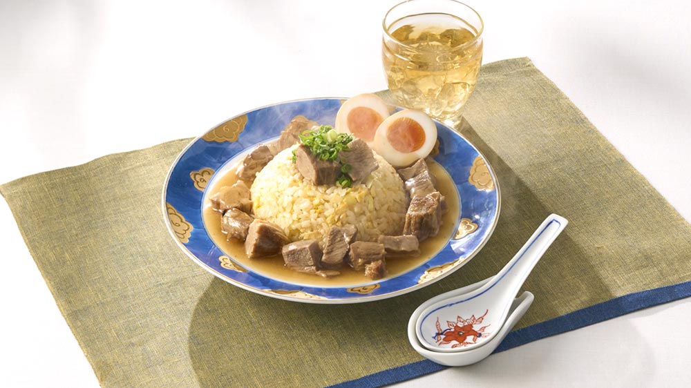 シンプルな炒飯にゴロゴロのチャーシュー入りのあんをかけて、ボリューム満点のよくばりな中華飯に。