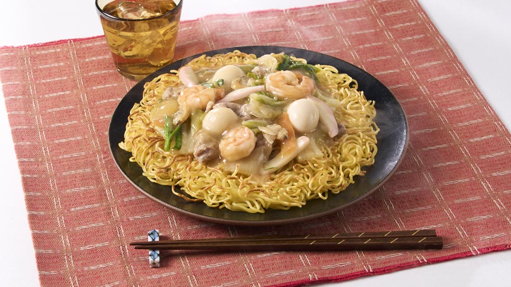 具だくさん&パリッと焼いた麺の香ばしさが醍醐味のあんかけ焼そば。